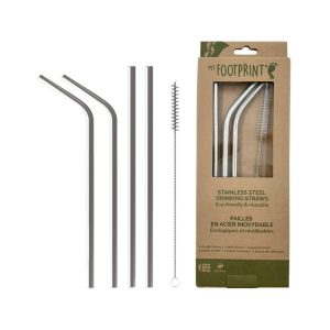 Pailles en acier inoxydable, ensemble de 4mcx avec brosse