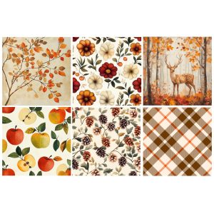 12 paquets de serviettes de table – Série ‘Sérénité d’automne’, 6 modèles, 20 unités ch.