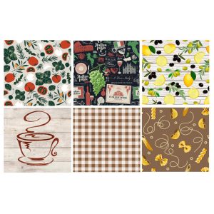12 paquets de serviettes de table – Série ‘Saveurs gourmandes’, 6 modèles, 20 unités ch.