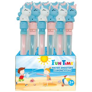Canon à eau Licorne, 3 couleurs assorties: bleu, rose et blanc. Présentoir comptoir de 24 mcx