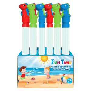 Canon à eau Dinosaure, 3 couleurs assorties: rouge, vert et bleu. Présentoir comptoir de 24 mcx