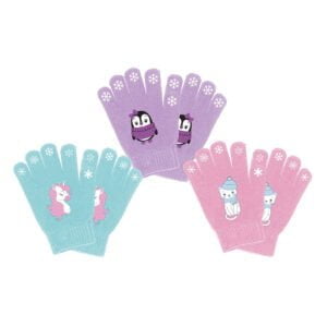 Gants pour filles – 3 modèles assortis – licorne, chat et pingouin. En assortiment de 12 unités (4 de chacun des...