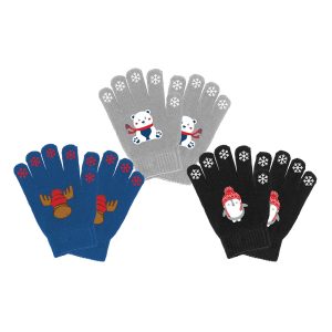 Gants pour garçons – 3 modèles assortis – ours, orignal et pingouin. En assortiment de 12 unités (4 de chacun des...