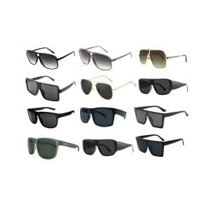 Assortiment de 12 lunettes de soleil mode pour hommes. 100% UVA/UVB