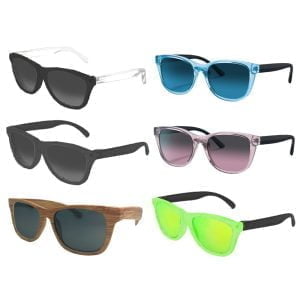 Assortiment de 12 lunettes de soleil mode YOLO, 6 designs assorties : montures mixtes (claires et solides). 100% UVA/UVB