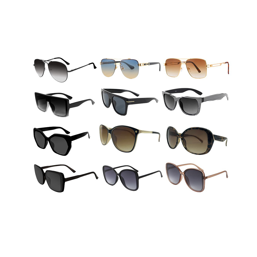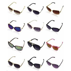 Assortiment de 12 lunettes de soleil mode pour hommes et femmes. 100% UVA/UVB