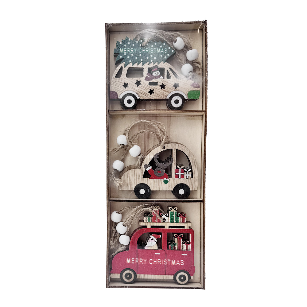 Set of Wooden Ornaments / Christmas Cars (9pc gift box), 7cm high