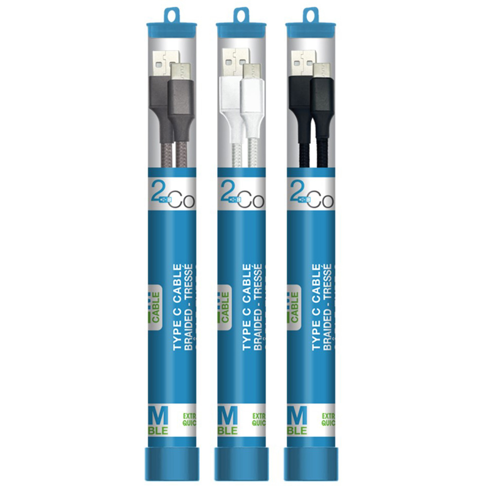 2M Type-C Braided Cables, 3 ass’t colors : black, grey, white