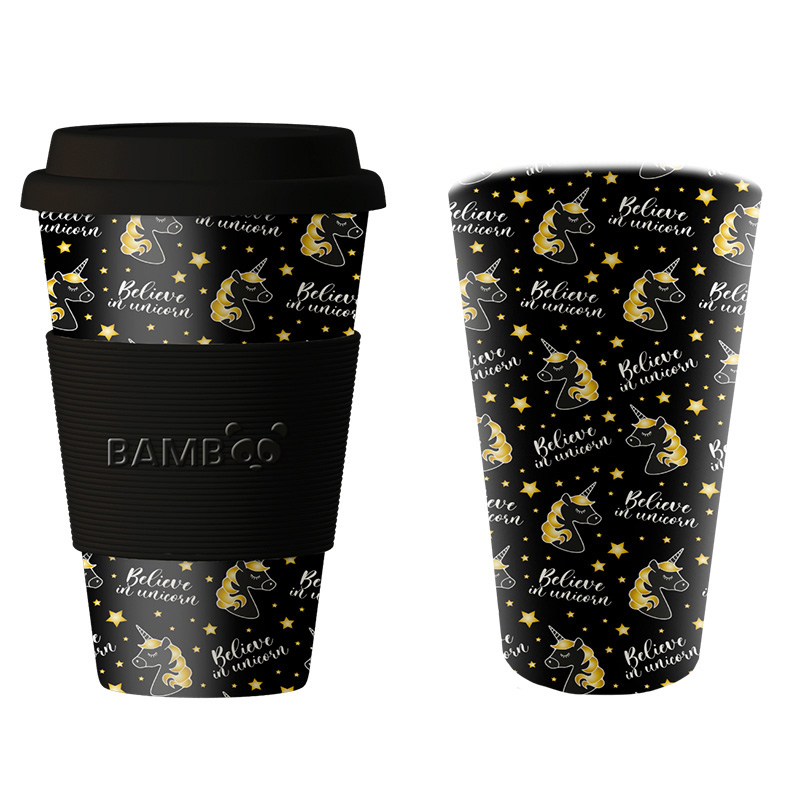 Bamboo mug, Gold Unicorns