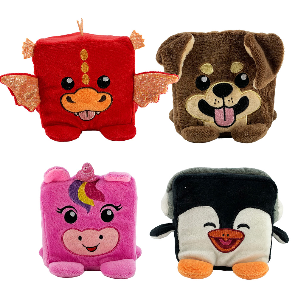 CUBIES peluches (4 ») – assortiment de 16 mcx sur chaîne. Coulcuers vibrantes, 4 personnages super-doux, 4x4x4