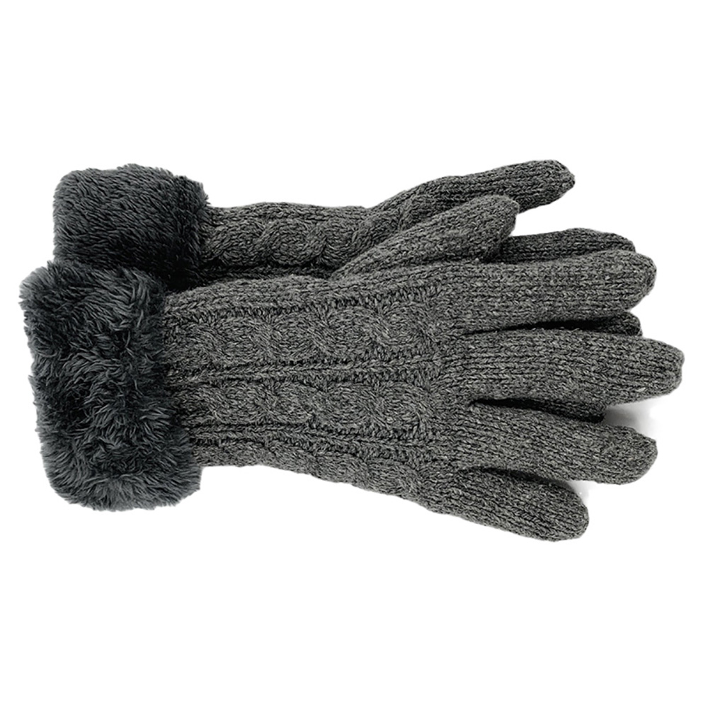 Gants en tricot avec poignet en molleton pour femmes, modèle tressé- Gris foncé. Comm min: 3
