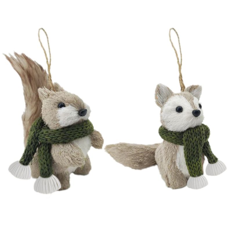 Duo d’ornements en fibres de paille naturelle – Écureuil et Renard