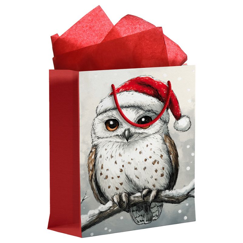 Sac cadeau de Noël, format petit (7 » L x 9 » H) – Hibou de Noël