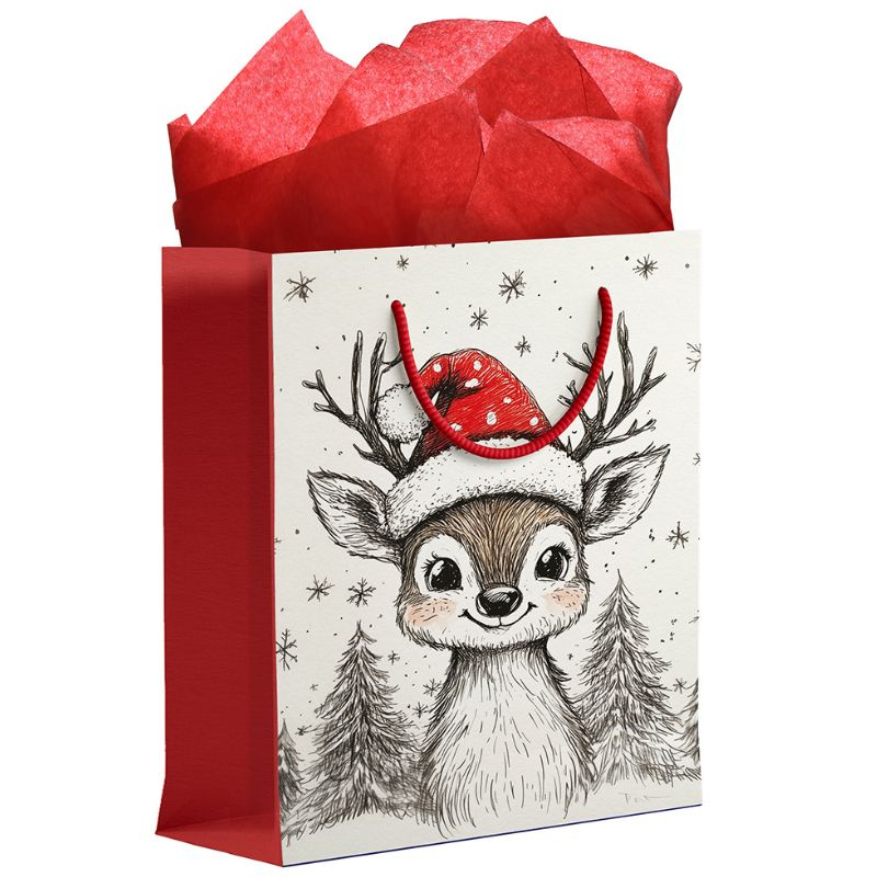 Sac cadeau de Noël, grand format (10 » L x 12 ½ » H) – Faon des neiges