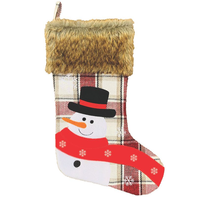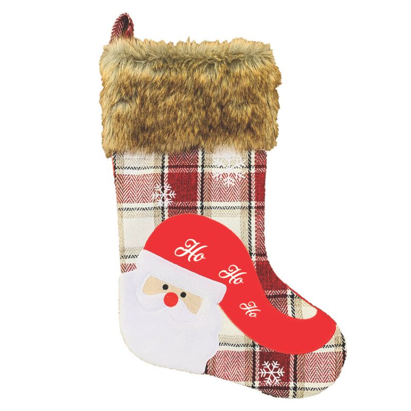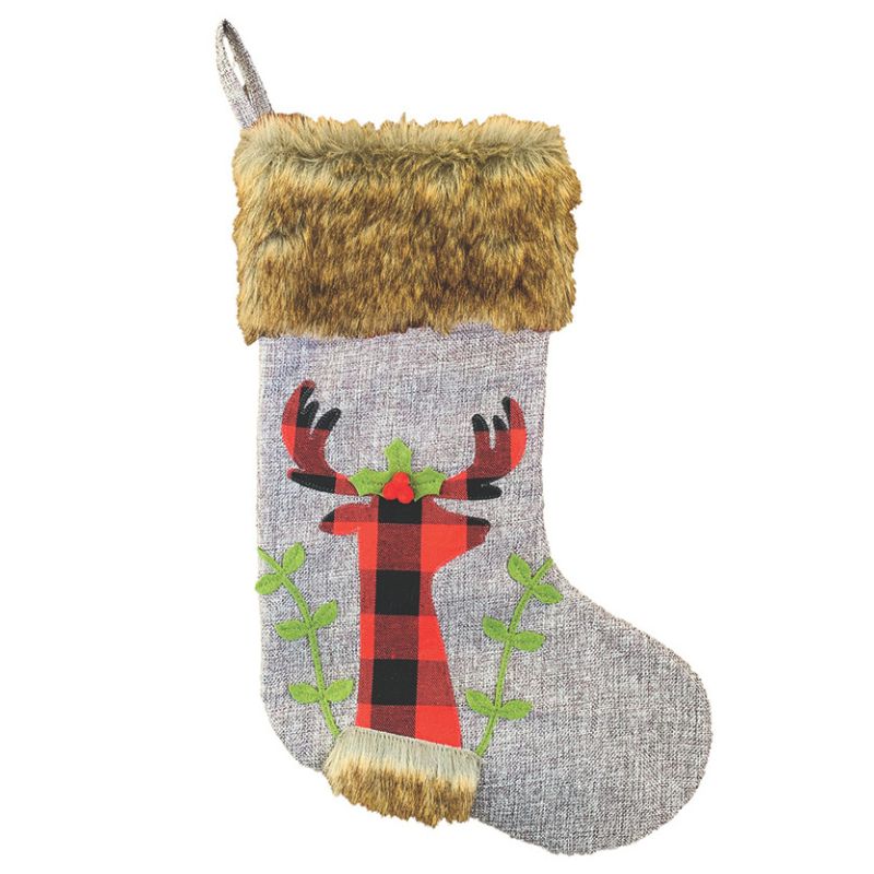 Bas de Noël avec fourrure brune – Motifs à carreaux / Renne