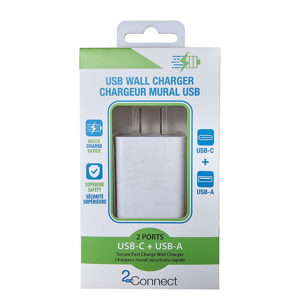 Chargeurs muraux, certifiés, 2 ports : USB-C & USB-A