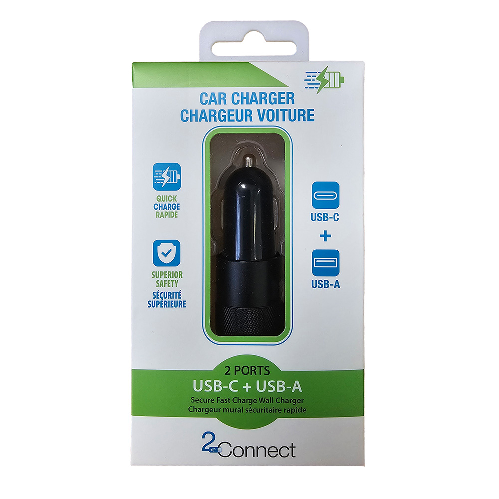 Chargeurs de voiture, 2 ports : USB-C & USB-A