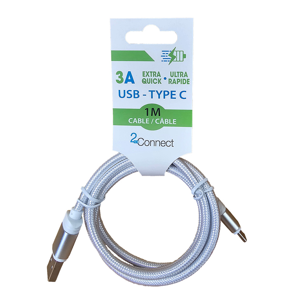 Câble tressé USB-A à Type C, 1m, 2 couleurs assorties : blanc,