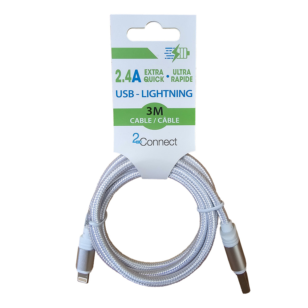 Câbles USB-A à Lightning – 3m – 2 couleurs assorties : blanc, noir