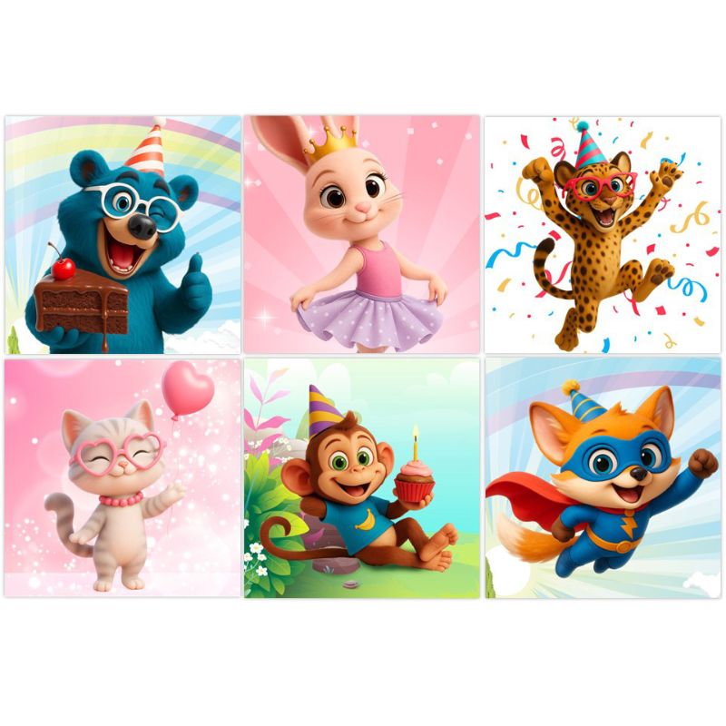 SAC CADEAU AVEC 5 PAPIERS DE SOIE – ENFANTS – Grand – Léopard festif avec chapeau et ballons