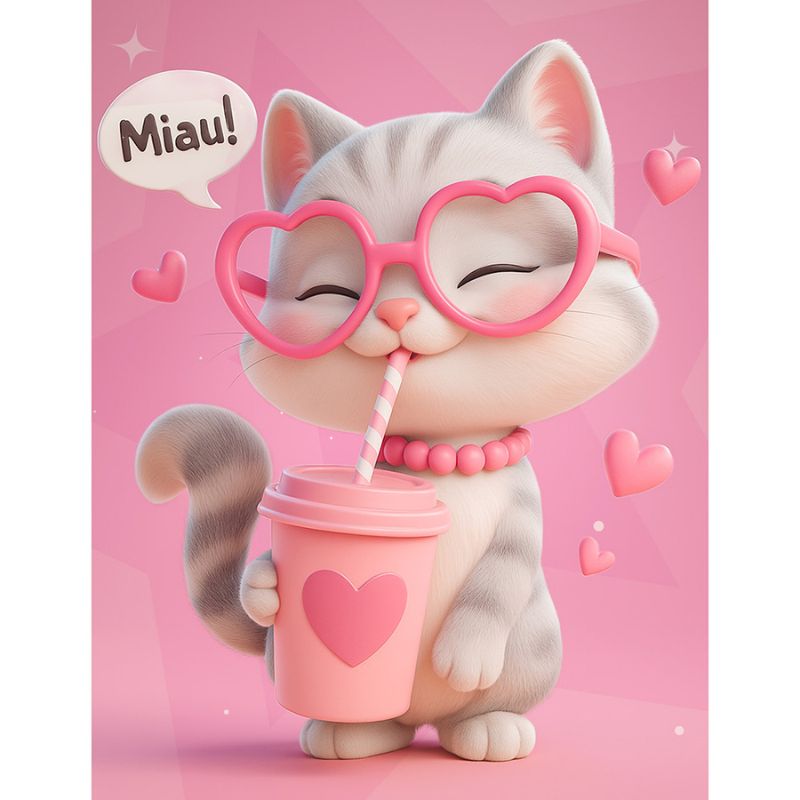 CARTE DE SOUHAITS POUR ENFANTS – CHAT ROSE