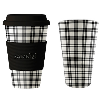 Tasse en bambou, Motifs à carreaux noir et blanc