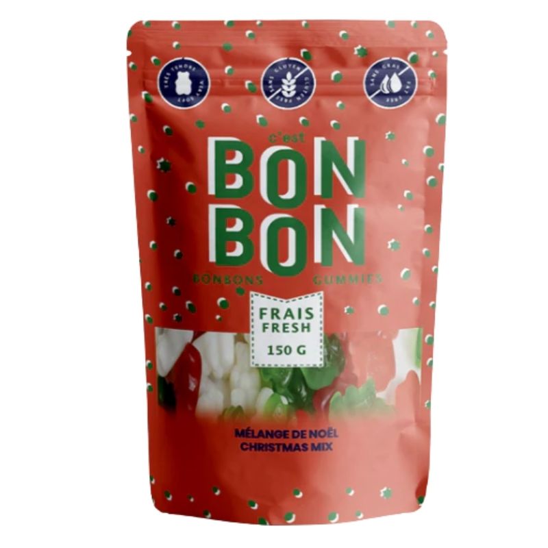 Collation stimulante végane composée de morceaux de chocolat noir mi-amer, d’amandes entières grillées, de fraises, canneberges, cerises, bleuets et de baies de Goji séchées, 45g
