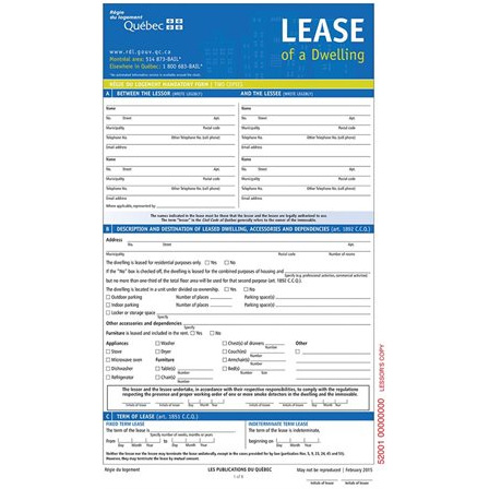 Annexe au bail officiel de la Région du logement du Québec – version anglaise