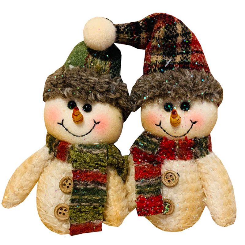 Ornements bonhomme de neige / 2 couleurs assorties dans un panier en bois – Collection scintillante