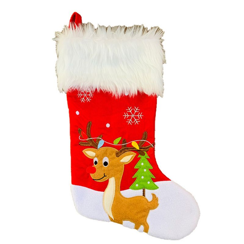 Bas de Noël rouge avec fourrure blanche – Motif renne