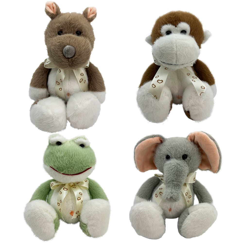 Peluches Lovables, 14″, 4 modèles: rhinocéros, éléphant, grenouille ou singe, assortiments de 8 mcx